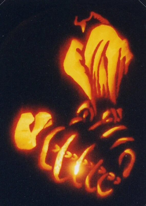 This pumpkin won an honorable mention in the Pumpkinmasters lettering category.