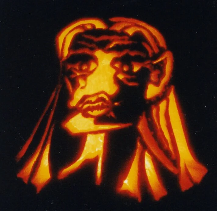 Clearly, this pumpkin is based on the Grant Wood’s American Gothic. It won third prize in the Pumpkinmasters sculpting category.