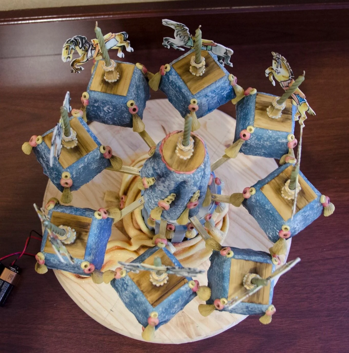 Obviously, it rotated and lit up. The little gum paste horses on the candles are modeled after horses on the real carousel.