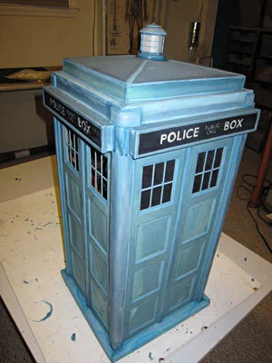It's a TARDIS! It's bigger on the inside! It's two feet tall (quarter scale)! And aside from the lights, everything you see is edible.